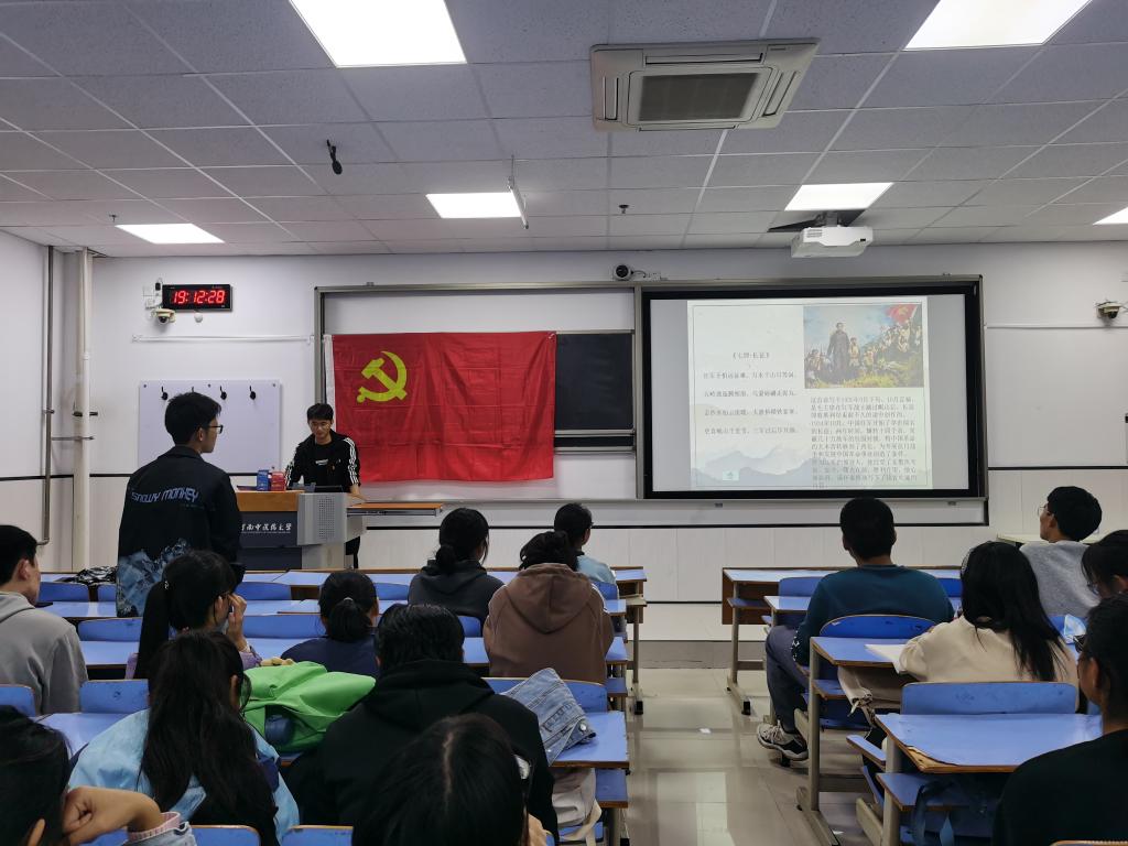 活动伊始,预备党员高一帆作为领学人带领大家一起阅读《毛泽东诗集》,通过观看诗集精彩朗诵片段,带领同学们感悟毛泽东同志崇高的情怀,体会革命党人为理想奋斗的艰辛,在这个过程中也让同学们感受到了中国共产党不怕困难、不畏生死的革命精神。在分享交流环节,同学们积极踊跃,主动地交流自己的感悟,共青团员陈莉萌说到:“奋斗刻在我们每个青年的基因里,我们要有朝气有担当,勇敢的承担起我们的责任。”