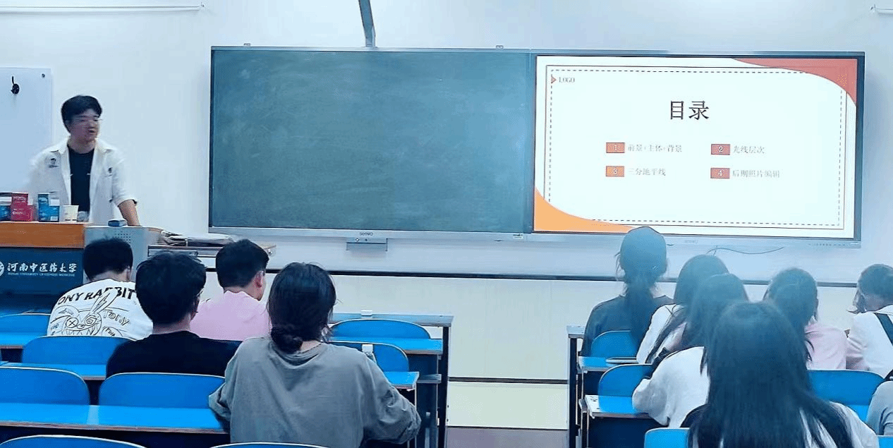 融媒体中心程沐为同学们普及摄影知识,对优秀作品进行点评。她从照片布局、光线层次、三分地平线、后期照片编辑四个方面讲解了摄影的技巧方法。接着通过照片实例,分析拍摄时的典型错误及规避方法,并对同学提出的问题进行细致的解答。在实践环节中,同学们对校园内及龙子湖周边的药用植物进行多角度的拍摄,并将优秀作品上交进行评选,最终刘益海同学拍摄的玉兰花姿态优美,构图合理,光线柔和,且从不同角度介绍了玉兰花的药用价值和形态特征,将摄影作品与中药知识进行了有机的融合,荣获一等奖。