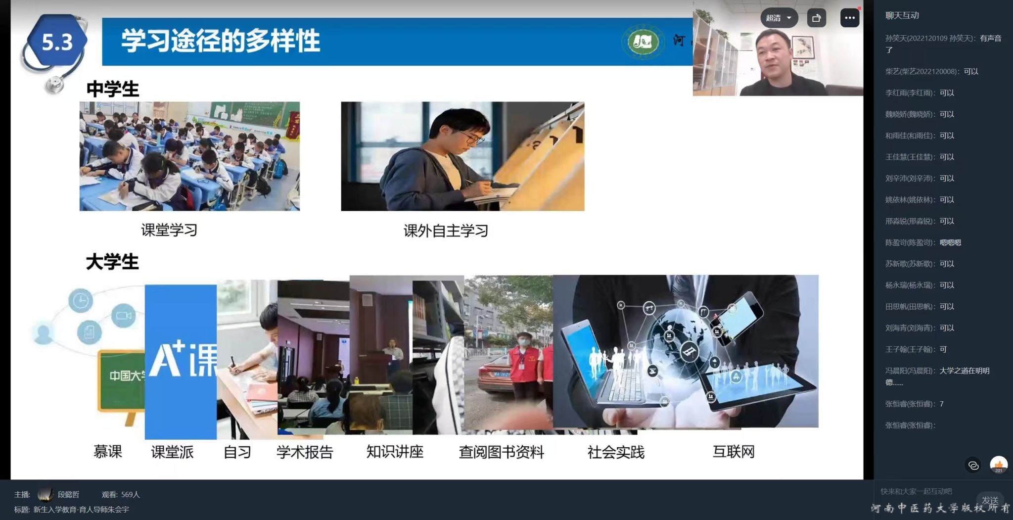 学业助导中心朱会宇老师主讲,2022级全体新生参与。