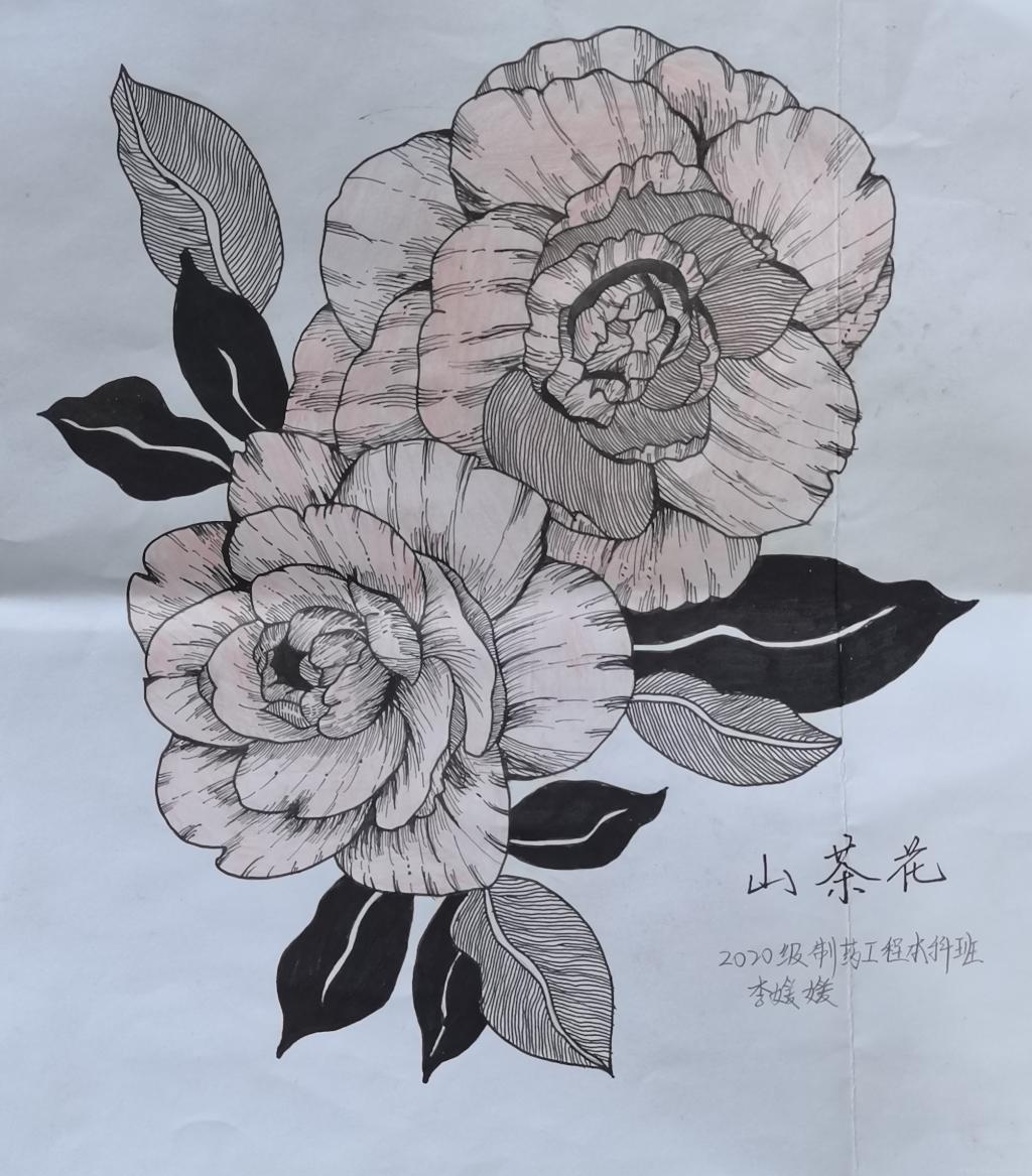本次活动为期一周,各班同学积极响应,踊跃参赛。为保证绘画作品更贴近于植物的真实形态,同学们在专业老师的指导下,积极查阅相关资料,认真研究药用植物的形态特征、入药部位、产地基源、功效主治等内容,结合专业知识进行作品创作,以中药材为基础创作出了许多优秀的作品。经过筛选和评比,2020级制药工程本科班李媛媛同学所绘的《山茶花》荣获一等奖。其作品以黑色的线勾边,再以简单的色彩填充,并且画出了脉络感和立体感,栩栩如生。本次活动将传统中草药与现代绘画艺术相结合,无不传递着新葡京娱乐城官网