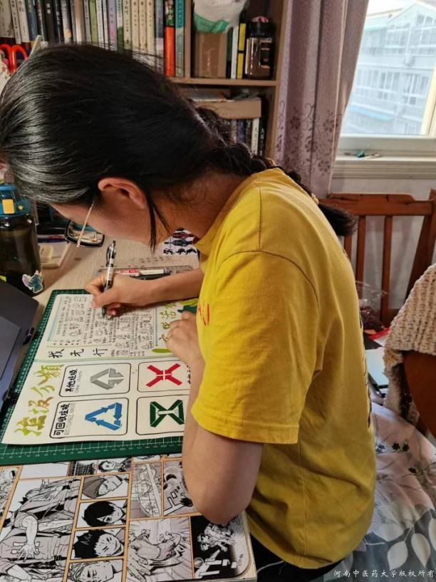 靳雨彤同学正在制作垃圾分类宣传海报