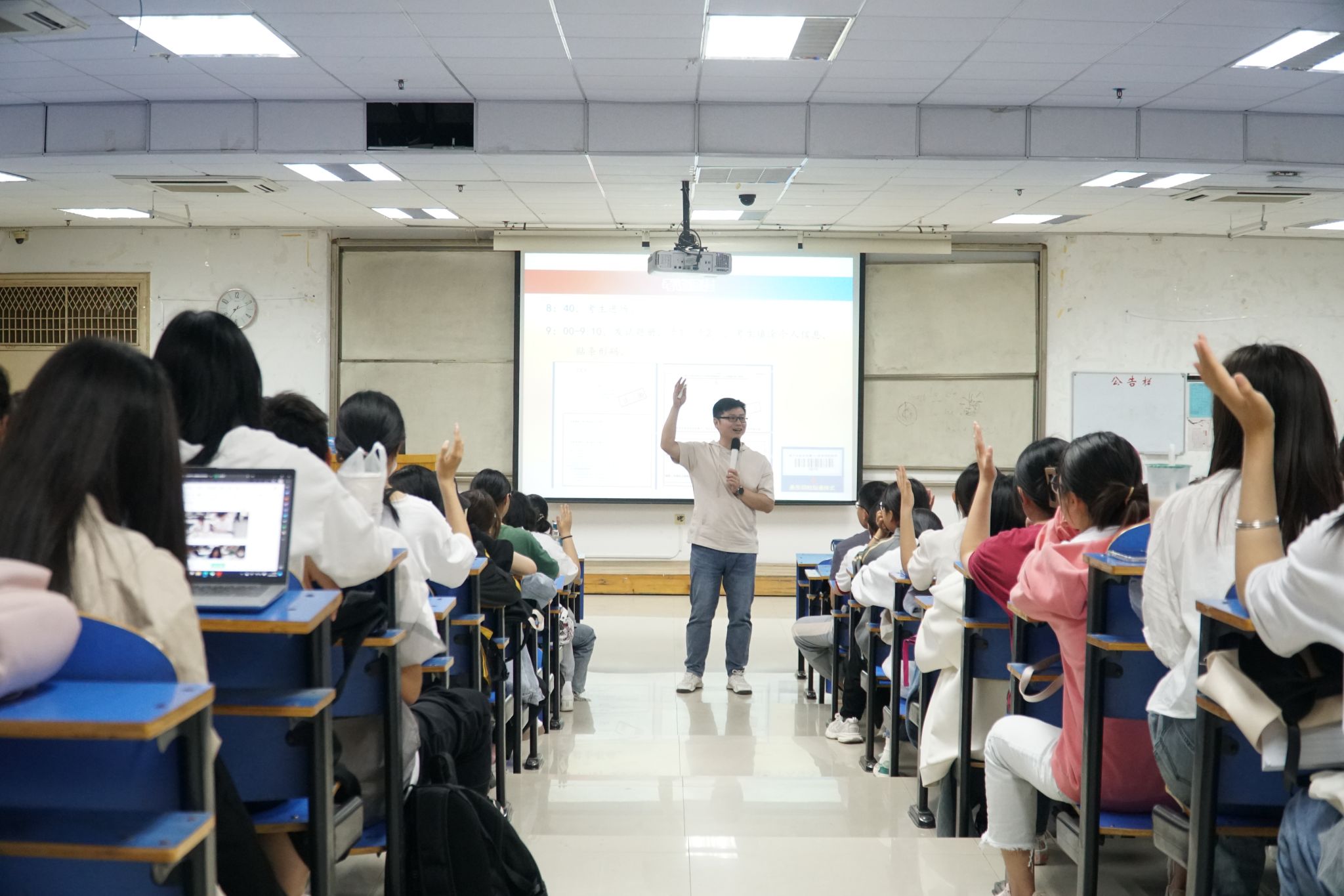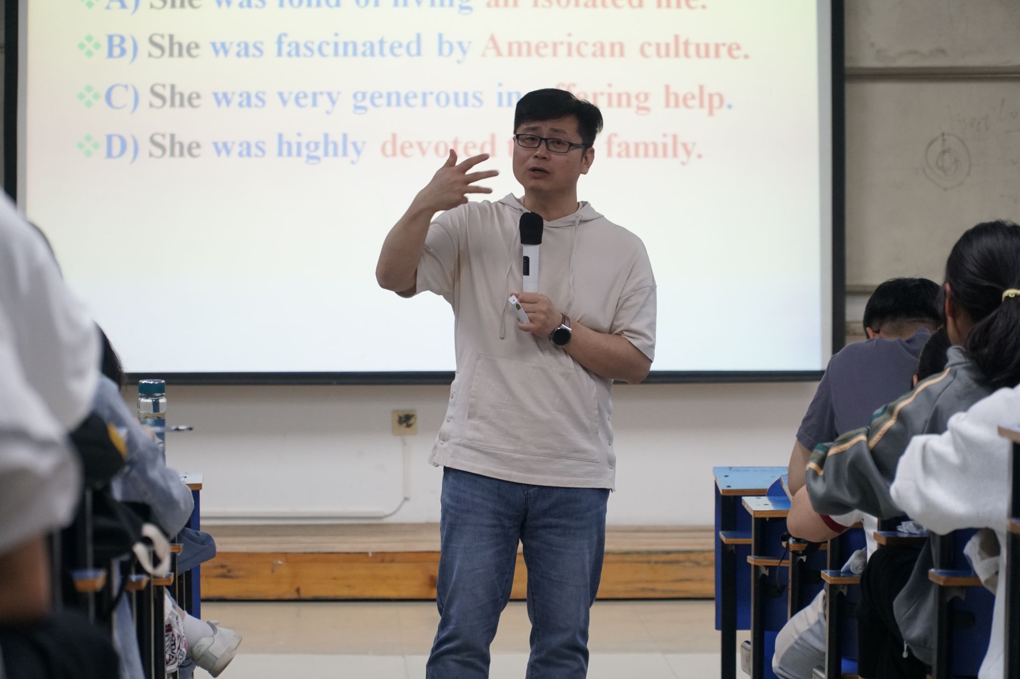 活动伊始,倪健新从四六级考试的时间安排、题型及分值、考试语速等方面入手,通过引导同学们解答四六级英语听力题目,为大家介绍四六级听力的备考原则。随后,倪健新帮大家确定了考前一个月学习目标,通过反复听真题、跟读英语听力、历年真题演练等方式备考英语四六级听力。最后,告诫同学们在平时要注重英语的练习,放平心态才能顺利迎战英语四六级考试。