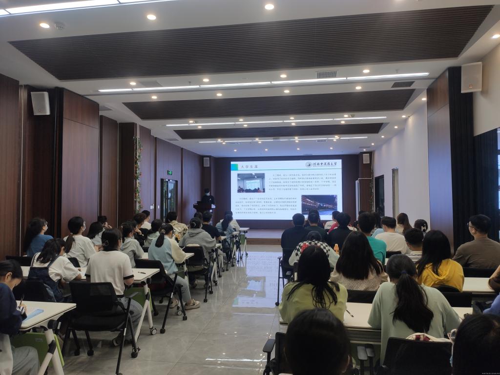 张云飞从自我剖析、大学生涯、专业学习、英语学习、课外实践、考研还是就业等六个方面分享大学四年的学习心得和经验。他表示,在专业课学习方面,课上认真听讲,随手记笔记,规划好每天的学习时间,认真对待每一次的作业。同时,建议大家加强英语的学习,多读多背多练习。最后,鼓励大家多参加课外活动,积极参与老师的科研项目,在实践中锻炼自己,不断提高综合能力。张云飞同学的经验分享,为同学们起到了积极的示范引领作用。参与活动的同学认真聆听,纷纷表示收获颇丰。