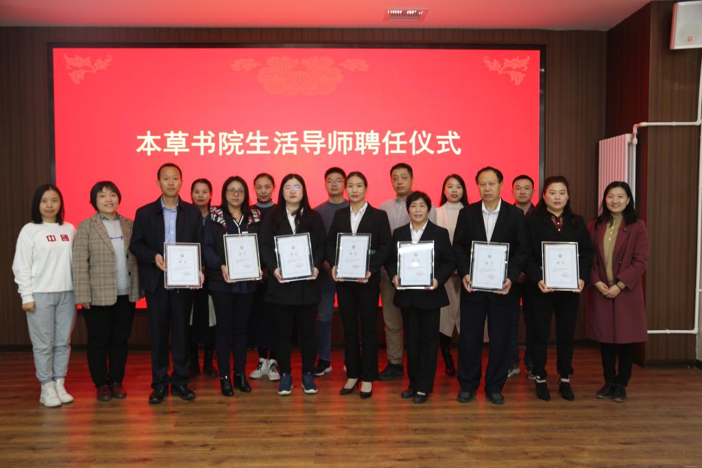 生活导师聘任仪式。河南中医药大学后勤服务中心副主任韩铁军,后勤服务中心宿舍管理科科长谢晓娜,新葡京娱乐城官网