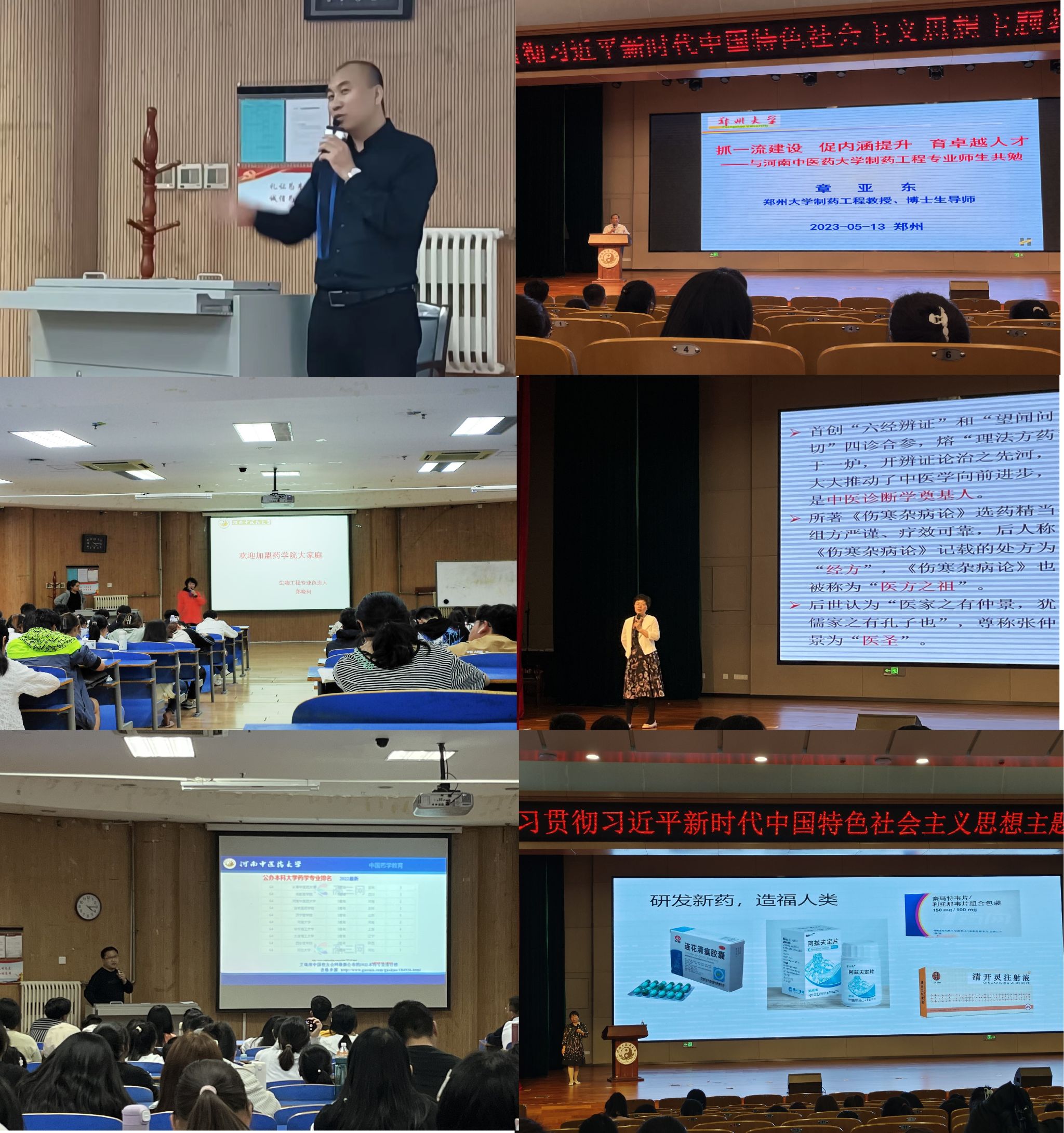 药学院副院长纪宝玉介绍中药学类各专业整体情况以及各专业的区别和联系。随后,七个专业负责人就各专业人才培养方案、课程设置、教学资源、专业优势与特点、发展趋势、师资力量、科研条件、考研与就业情况都进行了讲解,也对同学们表达了殷切的期望,希望同学们重视大学课程学习,扩展课外知识,多动手,多实践。同时,邀请郑州大学章亚东教授,详细地解说了中国中医药的重要地位,时代背景与历史意义,并对大学教育进行了指导。最后,近几年考研学生分享学习心得和感悟,鼓励学弟学妹努力学习专业知识。