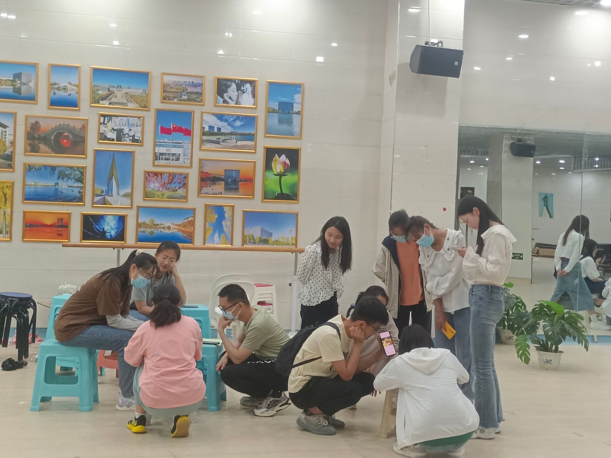 同学们共同商议分工绘画