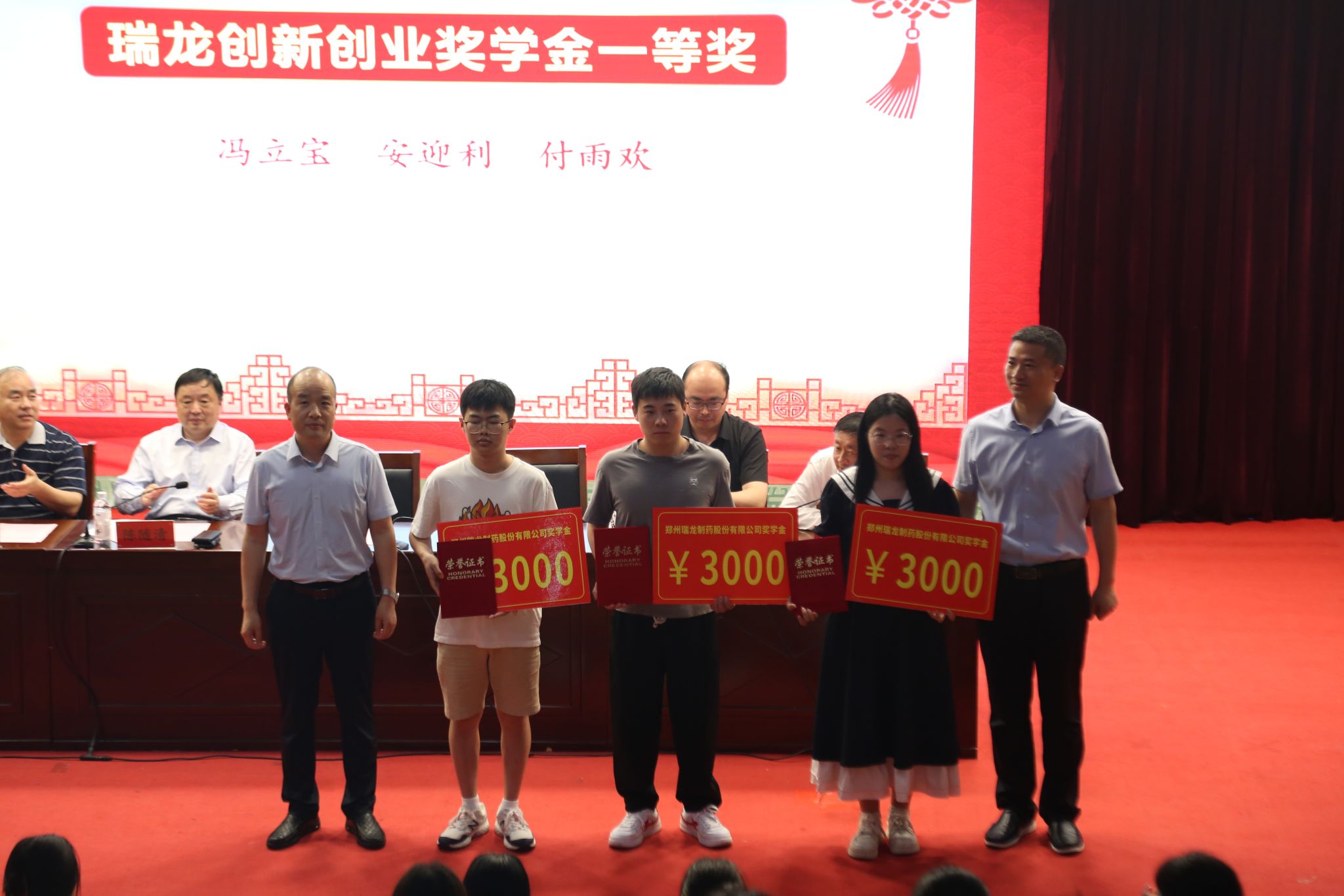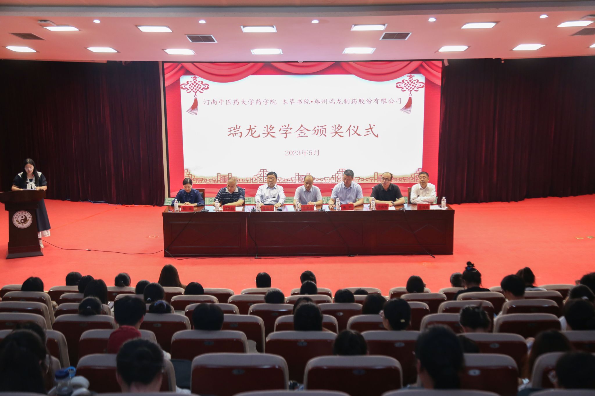 承办的2022年度瑞龙奖学金评审已经完成,于2023年5月31日在图书馆第一报告厅举行颁奖仪式。郑州瑞龙制药股份有限公司董事兼总经理牛金永、董事兼副总经理辛大刚、总工程师闫保勋,河南中医药大学药学院党委书记杨昕、院长陈随清、副院长董诚明,新葡京娱乐城官网