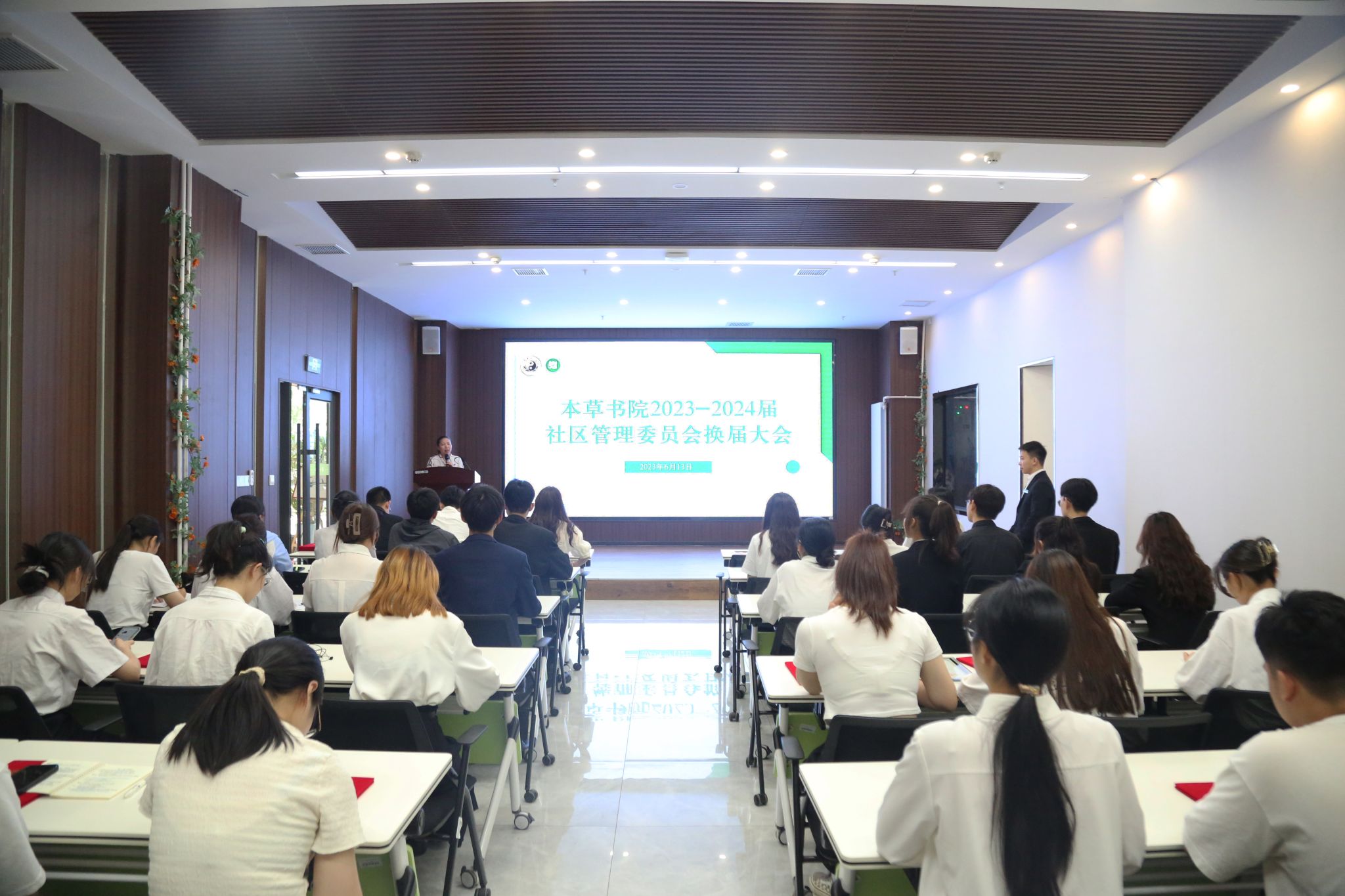 2022-2023届社区管理委员会主任孟琳做了工作述职报告,详细汇报了社管会过去一年在工作上取得的一系列成就,并表达了对新一届社管会同学的期待。随后,各候选人进行竞选发言,阐述个人优势以及工作展望。通过公平、公正、公开的无记名民主投票,选举确定了新一届社管会学生干部成员。社管会指导老师沈雪慧对同学们近一年的工作予以了肯定与赞赏并对下一届干部成员今后的工作提出新的要求,鼓励在场的所有学生干部都应该拿出沉着干练的处事态度,求创新、谋发展的思想以及独当一面的能力,在日常工作中身体力行、起到模范带头的作用。会上,与会老师为社管会成员颁发聘书。