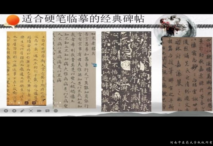 活动伊始,社团书画部的张天宇同学为大家详细讲解了楷书的发展历史、练习方法及习笔误区等有关知识。随后,书画部的成员对大家进行了线上书写指导。线上培训活动结束后,同学们积极前往校图书馆、惠芷阁社区等地的书画活动室进行楷书书法练习,进步显著。在大学生书画协会徐心影同学的指导下,卢巾姗同学纠正了自己原本错误的握笔姿势,书写过程也更加随手应心、挥洒自如。