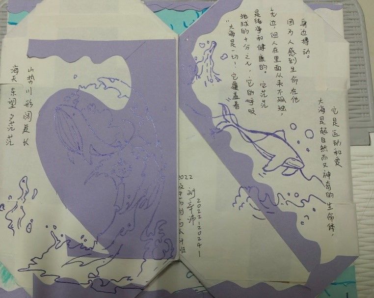 本次活动形式新颖,采取“线上+线下”结合的形式开展,参与活动的同学利用线上网络资源,查阅有关新闻资料,并以此引发自己对海洋环境保护相关问题的思考。查找过后,同学们需要运用身边的材料,切身融入自己的感悟与思考,制作出与活动主题相契合的文创作品。同学们充分发挥自身的创新性和主动性,制作手卡、便签、DIY海洋信封等,参与活动的同学们也表示,此次文创活动能够帮助我们更好的了解有关海洋环境的知识,也提高了自身保护环境的自觉性,在今后将以实际行动来践行海洋保护,为保护美丽的海洋环境做出自身贡献。