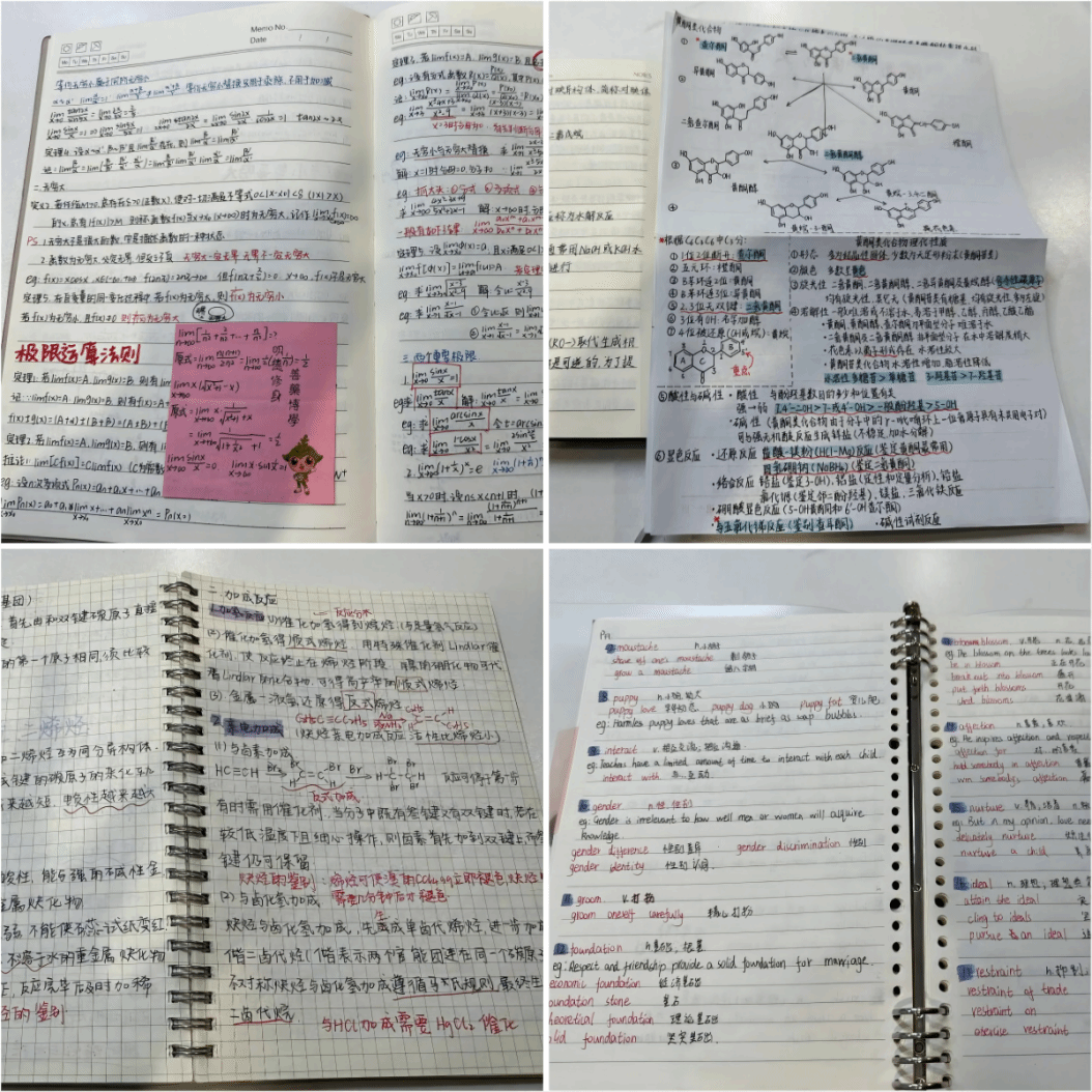 笔记记录着最美好的奋斗时光。一笔一划都是学习的见证。“最美笔记”评选活动自10月28日启动以来,受到同学们的积极响应,累计收到各年级60余份优秀笔记。笔记形式多样、内容充实、逻辑明了,字里行间展示出新葡京娱乐城学子专心致志的学习精神。经过评选后,吴雨涵同学的笔记字迹娟秀,规整美观,条理清晰,荣获一等奖。朋辈导师于11月7日将评选出的“最美笔记”进行展示,希望更多学生以此为标杆,做到勤思考、多动笔。
