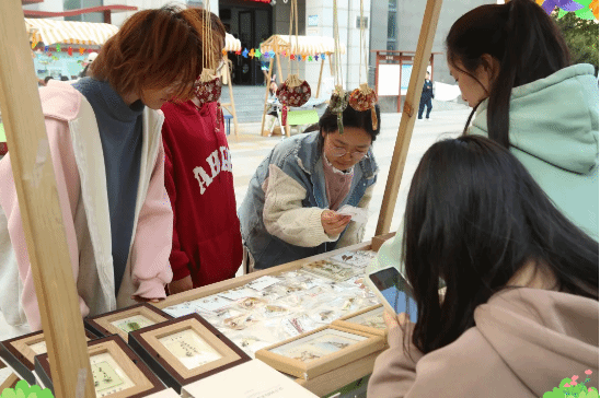 在熙熙攘攘的集市上,一家售卖中药标本的店铺很是醒目,摊位上摆满了用各种中药材制作的标本、发卡和饰品,吸引了众多同学的围观。这个店铺的摊主是8号楼517的几位同学,她们这间店铺叫“神奇中药在哪里”,想要通过多种形式的中药文创产品,弘扬中医药文化。她们是以寝室组建的创业团队,大家志趣相投、分工明确、非常团结。大家在这个活动过程中既加深了寝室友谊,又得到了锻炼,增强了毕业后共同创业的信心,收获满满。