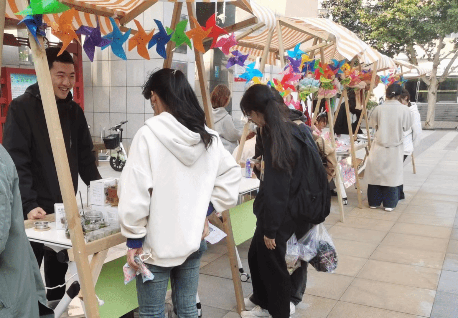 本次市集共设12个摊位,活动现场亮点纷呈,热闹非凡。学生摊主们激情地吆喝着,各色商品涵盖DIY手工艺品、精美花束、惊喜盲盒等。有的摊位把当前深受广大青年喜欢的“流体熊”引入社区;有的准备了精美花束,不到1小时被抢售一空……充满青春活力的市集充分展示了新葡京娱乐城官网