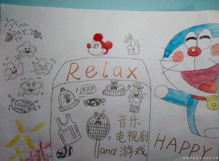 在本次活动中,同学们以“口念词句,手绘万千”为主题,结合自己知识储备,充分发散思维、大胆想象,创作了各式各样的创意单词画。这些优秀的作品以活跃的灵感、创造性的想象以及新颖的表述展现出同学们对英语单词意义的不同理解。其中,2021级中药学类四班师雨欣同学的作品《彩绘单词韵》描述了自己缓解考试焦虑的一些方法,比如打羽毛球、听舒缓音乐等等,展示了大学生面对考试压力时主动调整的积极心态和良好有效的应对措施。