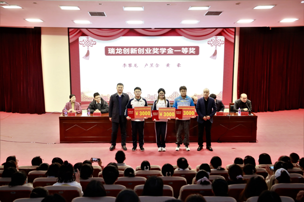 获得瑞龙创新创业奖学金和瑞龙自强进取奖学金的学生代表李攀龙、赵凤琴依次上台发言,分享获奖经历,感恩企业帮扶,并表示要努力学习,全面提升自我,早日回报社会。