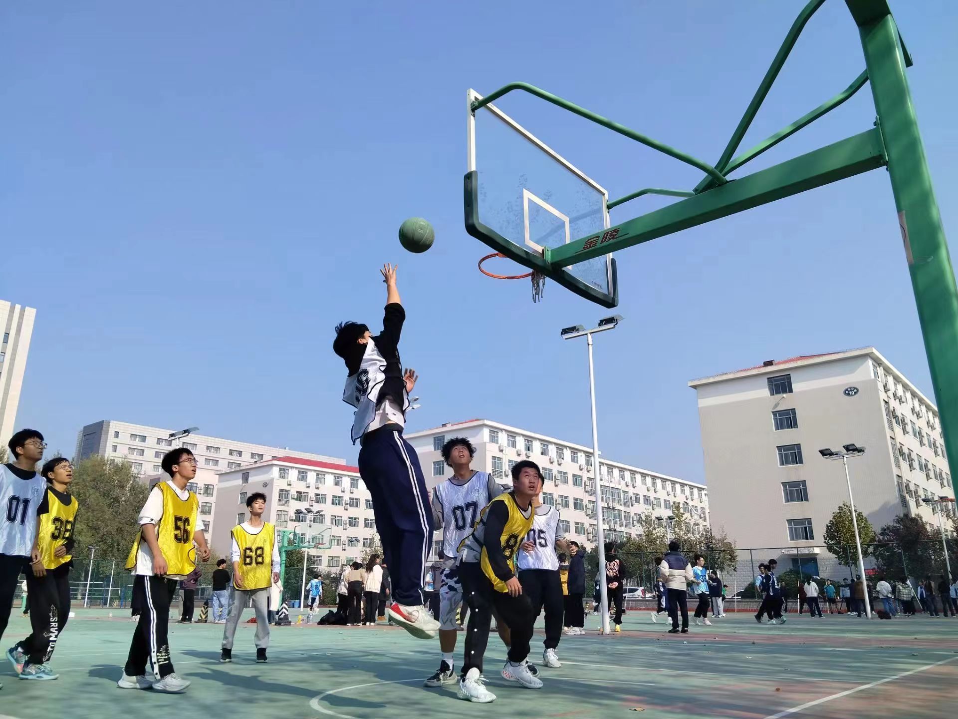 男子篮球友谊赛,共有5支自行组建的球队参加了比赛。