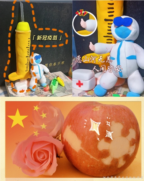 学子的创新思想。其中同心小分队以穿着防护服的医护人员为主题的太空泥塑,向千千万万为国家为人民挑起民族脊梁的守护者们致敬,传达出了“愿山河无恙,人间皆安”的美好祝愿;2020级药物制剂本科班的田含晴同学设计的书签着重体现了疫情期间“小人物”起的“大作用”,同时也是对团结一心共抗疫情时代的纪念;而2021级中药学类四班的吴梦琪同学的创意雕刻作品《“苹”安》增进了同学们对击败新冠病毒的信心,激起了对幸福健康生活的向往,获得评委们的一致好评。