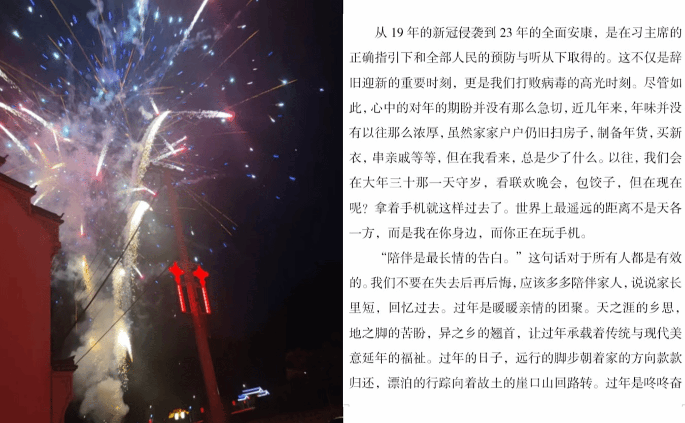 本次活动以春节为主题,参赛者用相机拍摄带有春节气息的照片,用文字记录阖家团圆欢度春节的美好时刻。其中,2021级中药制药朱小兵同学拍摄的烟花照片洋溢着新春的喜悦,盛世之象可见一斑;2023级中药学类五班刘佳慧同学的作品,以优美且富有情感的文字描绘了热闹的春节景象,字里行间流露出家人陪伴的欢愉与温情,饱含新年伊始欣欣向荣的生机。新年是咚咚奋进的鼓点,希望同学们伴着新年的曙光在新的起点扬帆起航。
