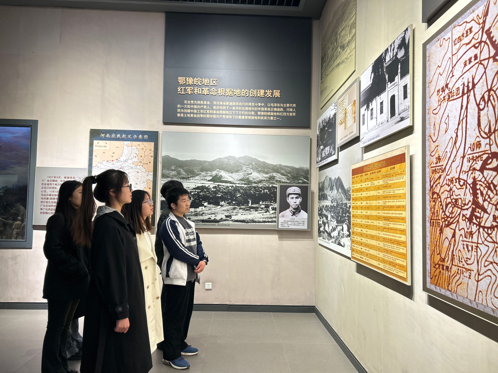 师生前往郑州烈士陵园中原英烈纪念馆进行参观学习,展馆内一件件斑驳的革命文物、一张张珍贵的历史照片、一幅幅感人的影像画面,承载着一批又一批志士仁人、英模烈士感天动地、可歌可泣的事迹,吉鸿昌、吴焕先、杨靖宇、彭雪峰等英模烈士也让大家深刻感受到了革命先辈们前赴后继、英勇奋斗的精神。同学们在事迹展板前久久驻足观看,每一个人的思想都受到了革命教育的洗礼,精神也得到极大鼓舞。