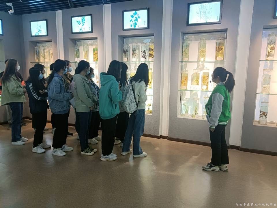 讲解员夏雪洁为同学们讲解中药标本馆