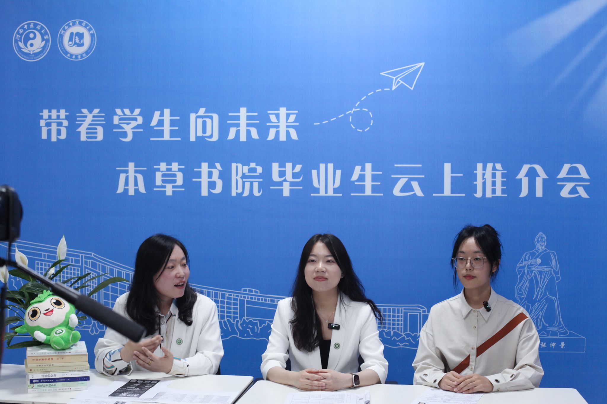 通过云直播开展了“带着学生向未来”毕业生云上推介会。高巍和毕业班辅导员朱会宇、姚湘通过直播提供企业介绍、优秀毕业生推荐等就业服务。