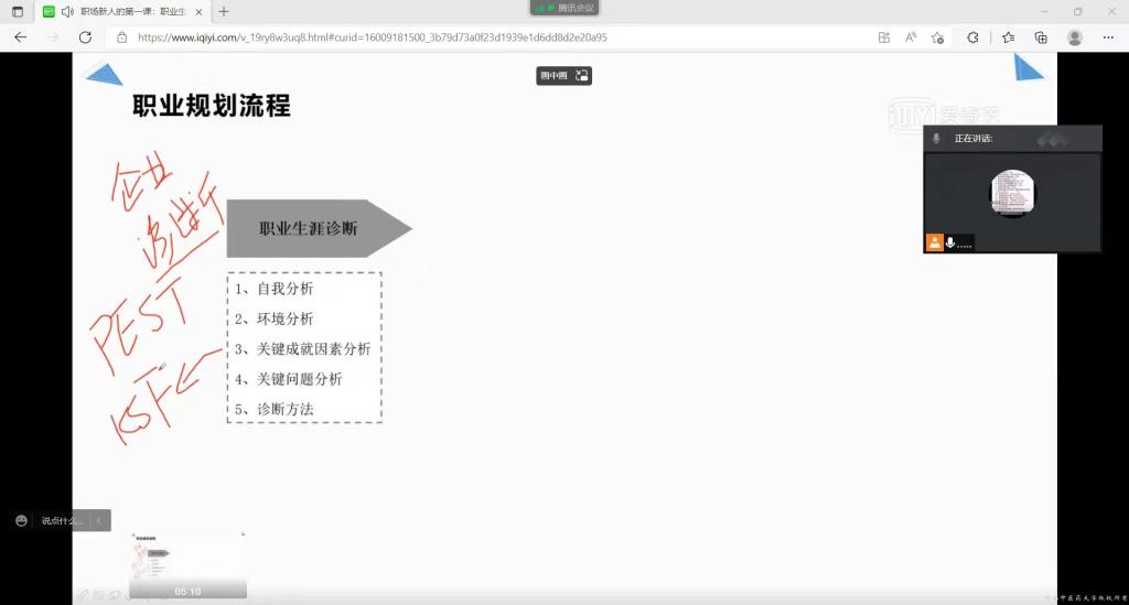 本次宣讲活动中由职业生涯发展协会会长詹博元同学担任主讲人,通过详细介绍职业生涯规划的具体流程,使同学们对职业选择有一个初步的了解,进而让同学们树立起清晰、明确、具体可行的就业目标,对自己有更清晰的定位,以期更好地实现未来就业问题。同学们在认真听讲“云宣讲”活动之后,积极地向社长詹博元询问相关问题,詹博元社长也结合自身经历和所学常识就同学们的问题进行了生动具体的解释,并为询问的同学进行了初步的职业生涯规划指导。