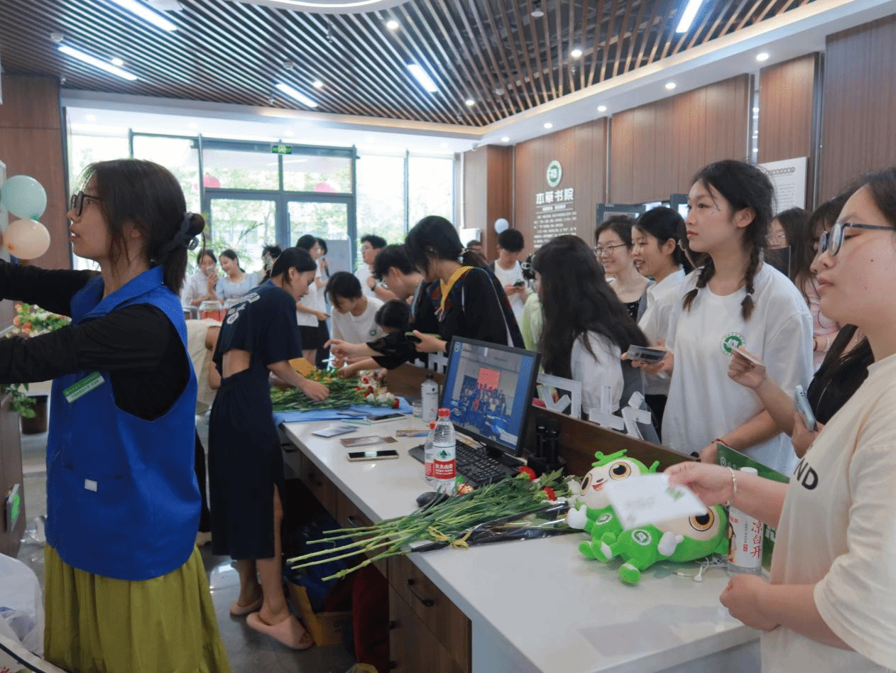 深深的惦念;卡片背面,书写着毕业生们对未来的期盼与对母校的美好祝愿,同学们纷纷用这份祝福与工作人员交换来一枝花,作为此次活动的“伴手礼”。