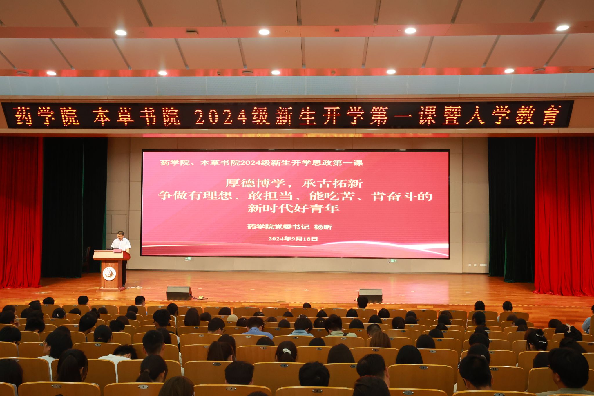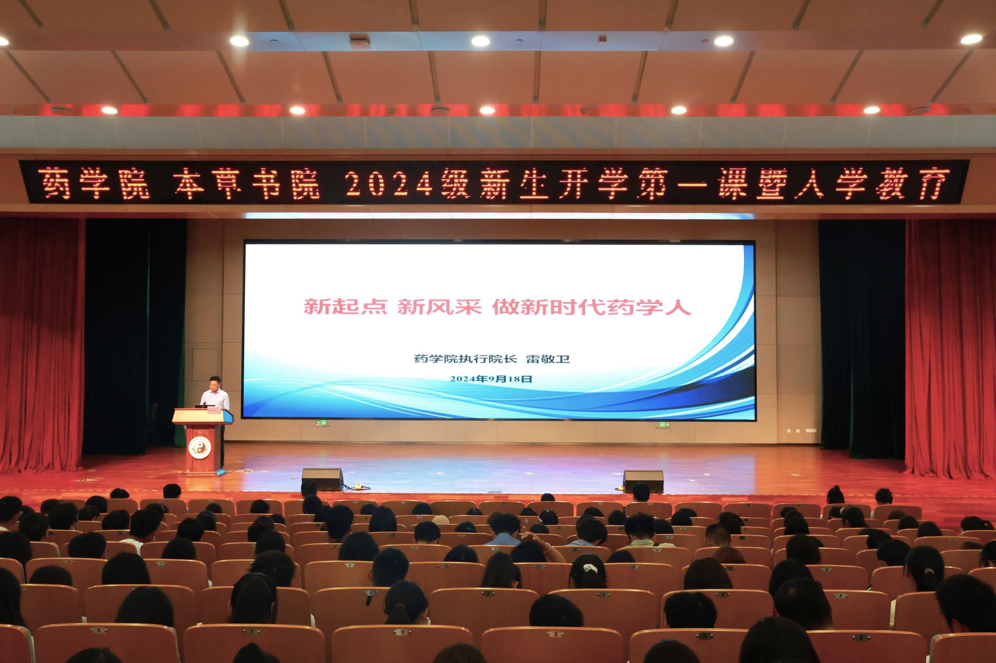 于2024年9月18日在俊学楼B101举行2024级新生入学教育暨开学第一课,药学院党委书记杨昕、执行院长雷敬卫,新葡京娱乐城官网