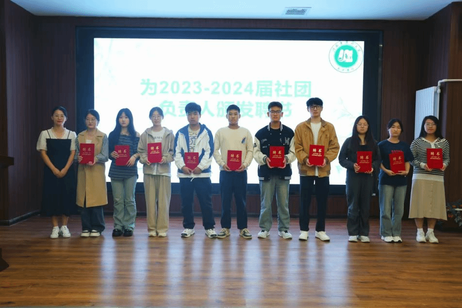 学生社团新任负责人依次上台从社团概况、上一年社团工作、社团未来规划等方面进行了汇报。然后,优秀社团代表、职业生涯发展协会负责人谢依婷和远志医药文学社负责人姜涵依次从社团管理、迎新、培训等方面进行了经验分享。张田丽为学生社团负责人颁发聘书,并希望同学们坚守初心,保持对社团工作的热情。