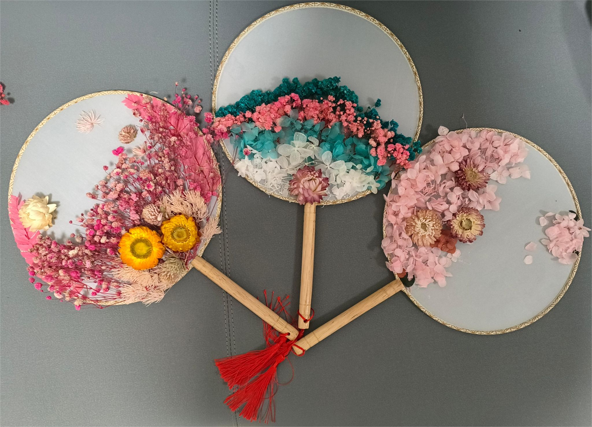 心理辅导站于2024年9月24日举办了“银龄巧手,执扇芳华”永生花团扇活动。