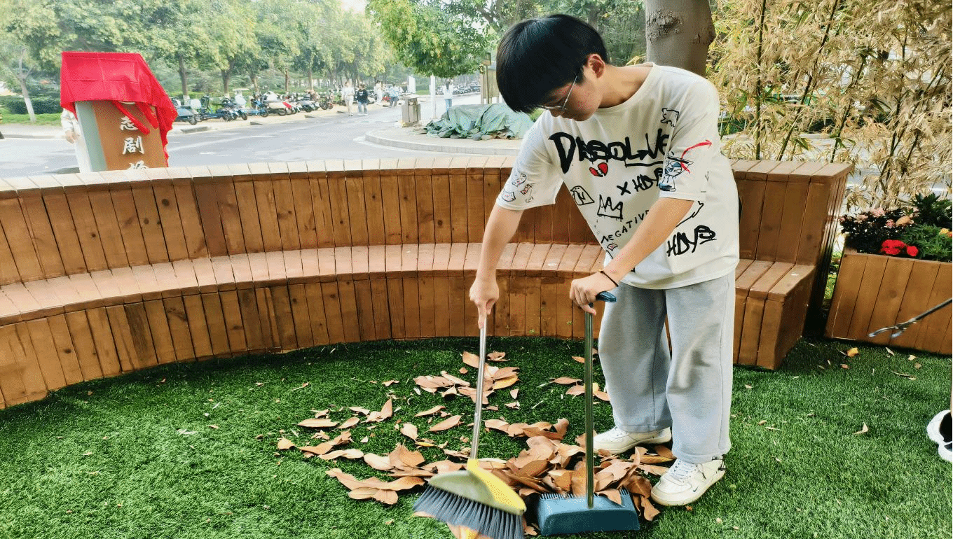 学生对远志剧场进行打扫