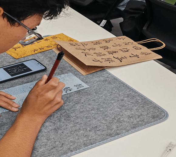 在远志学堂举办“墨香药韵——秋叶书法文创体验”书画活动。本次活动由大学生书画协会承办,共吸引150名同学的踊跃参与。