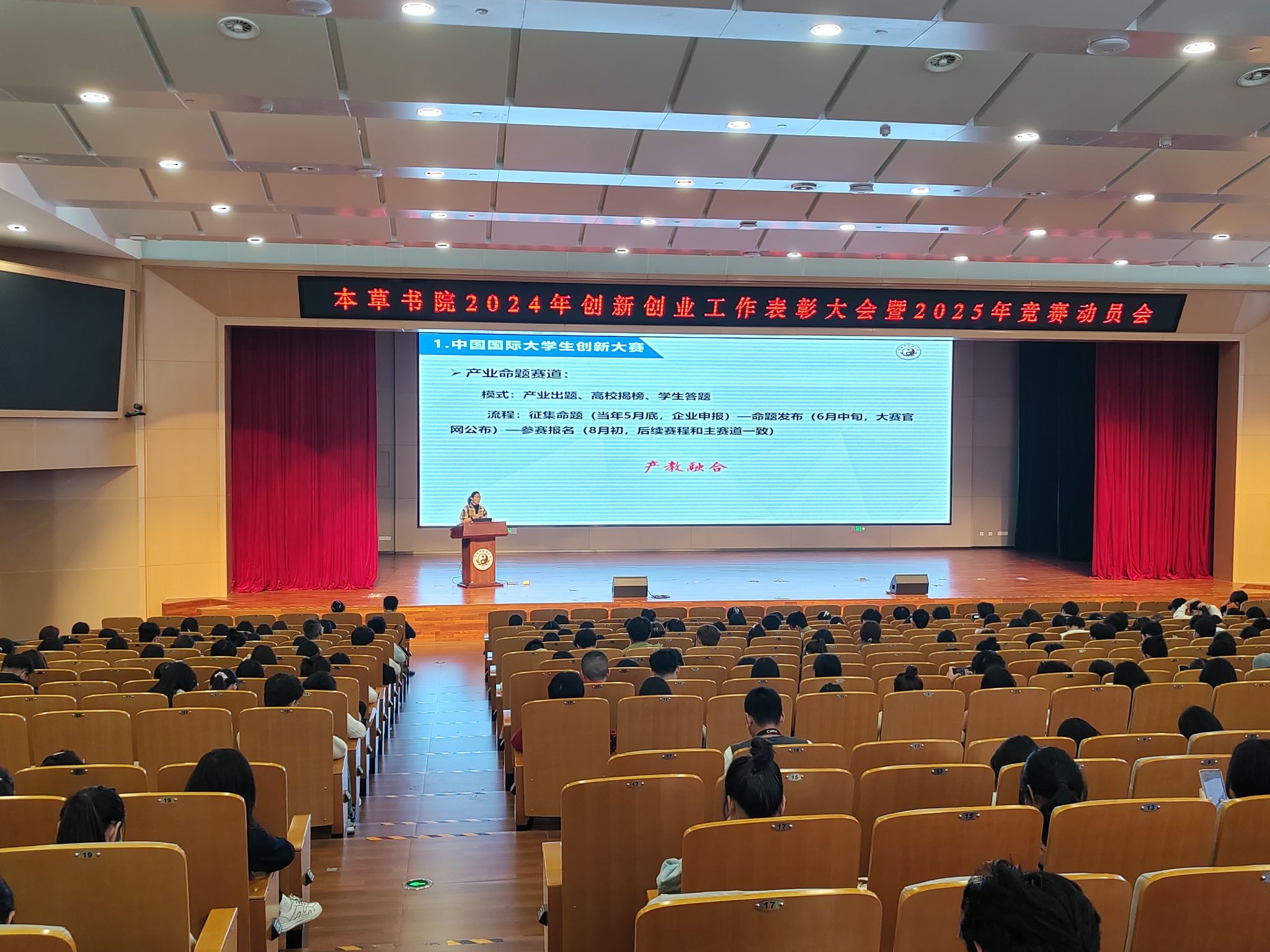 创新创业先锋队成员及2023级、2024级学生代表等500余人参加了会议。会议由新葡京娱乐城官网