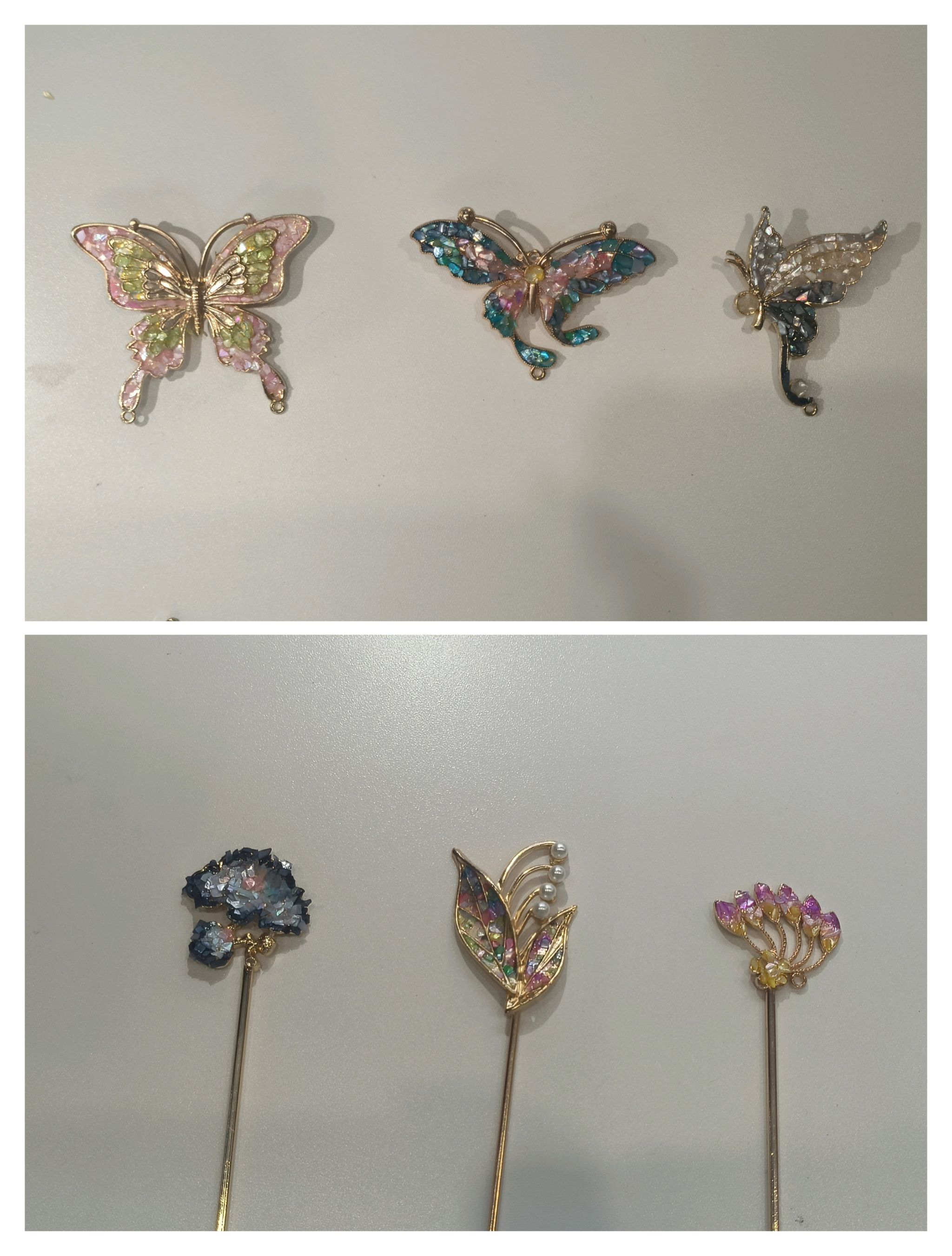 活动伊始,同学们积极挑选并组合异形螺钿与彩色亮片,开启创意之旅。制作过程中,大家热烈交流,深入探讨制作细节。有的同学采用简约的单色设计,凸显古朴韵味;有的则巧妙运用多彩亮片,营造绚丽视觉效果,充分展现了丰富的想象力和出色的实践能力。在同学们的共同努力下,一件件精美的螺钿作品相继诞生。翠绿的竹子胸针寓意坚韧;粉红交错的蝴蝶发簪充满童趣;金黄的花朵挂饰象征希望。每一片螺钿都饱含着同学们对生活的热爱,成为了他们心灵的寄托,也承载着彼此间真挚的情谊。