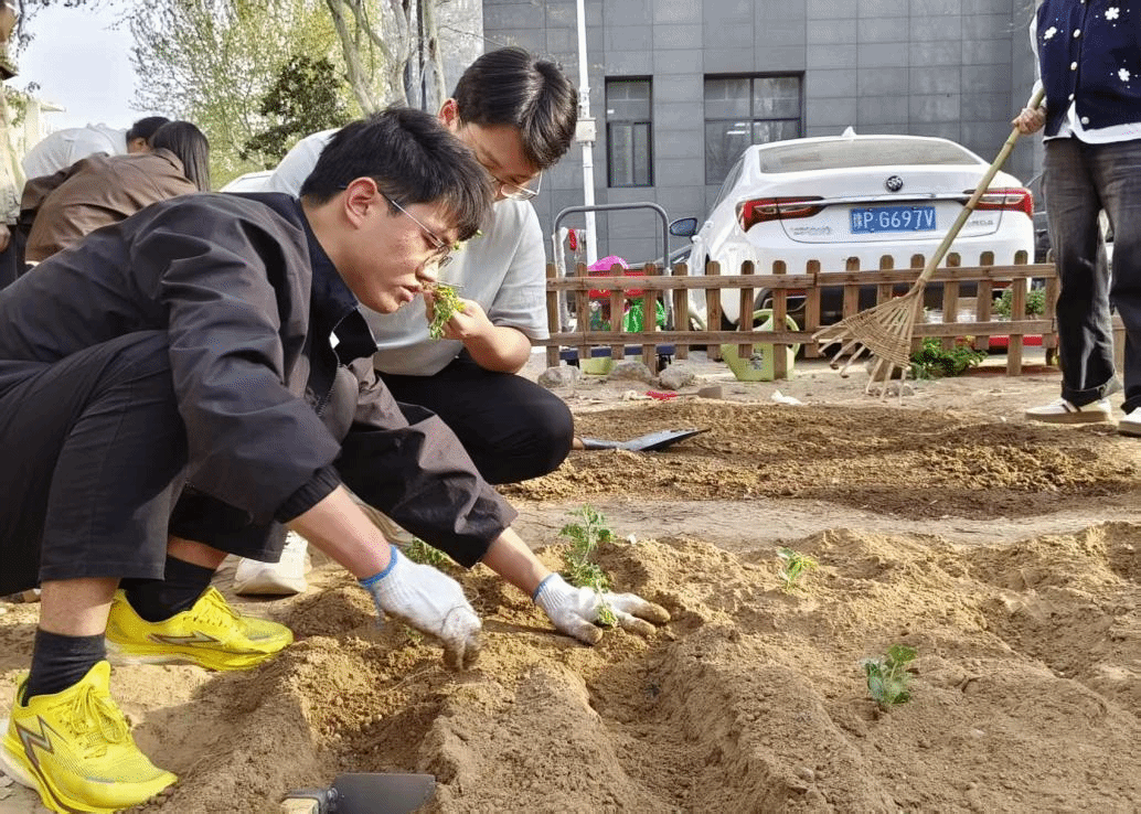 学业导师兰金旭、学业助导中心教师段懿哲带领全校近三百名同学,依托六号楼北侧药植苗圃实践基地,系统开展药用植物栽培专业劳动实践。
