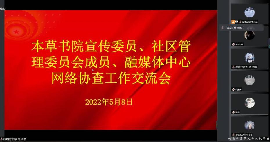 于2022年5月8日于线上开展疫情防控宣传工作会议,会议由姚湘老师主讲,新葡京娱乐城官网