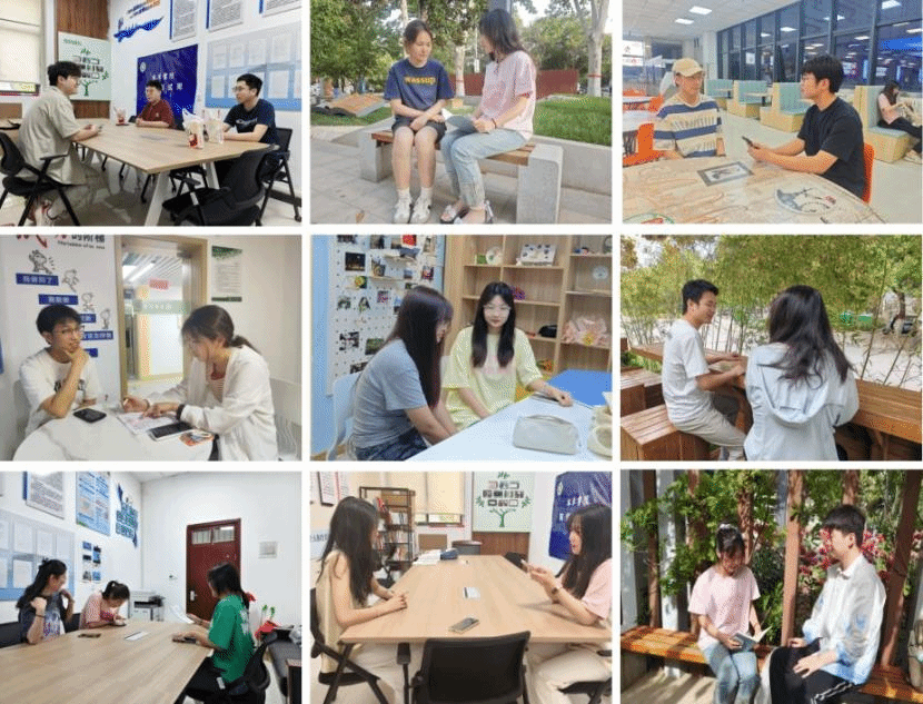 资助育人志愿团组织开展了2025届考研升学毕业生采访活动。志愿团28名成员全员参与,累计采访56名成功考取硕士研究生的同学,采访足迹遍布校园凉亭、宿舍楼大厅、地下功能间、远志学堂、宿舍、餐厅等地。