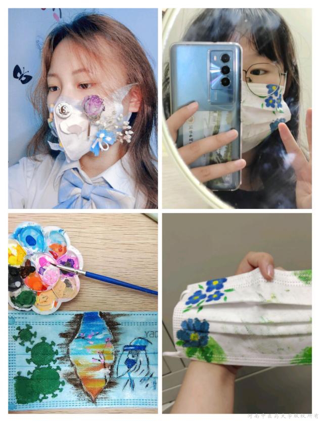 活动一经发布,便受到同学们的积极参与。本次活动以口罩为媒介,利用颜料、画笔、花瓣等进行创作,同学们充分发挥想象力,用色彩斑斓的画笔绘就一幅幅青春明媚的图画。或是鲜花烂漫、或是可爱卡通、或是憨厚“大白”,同学们用自己的独特创作赋予了“口罩”趣味性和生命力,展现了当代大学生在疫情之下积极乐观的生活态度和对美好未来的期待。