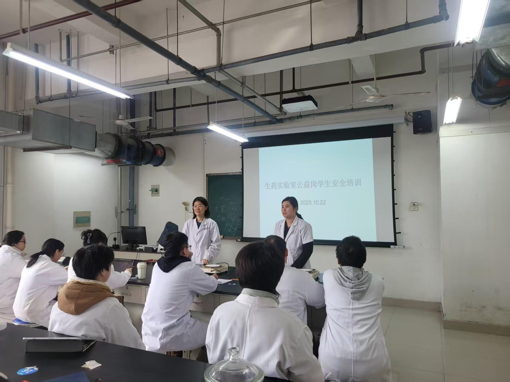 本年度奖助学金评定完成之后,根据上级受资助学生适当参加公益实践的要求,安排获得国家助学金的大一和大二学生参加药学院教学实验室公益岗,各实验室于10月22日到24日分别对本实验室的所有新一届公益岗学生开展了岗前安全培训。