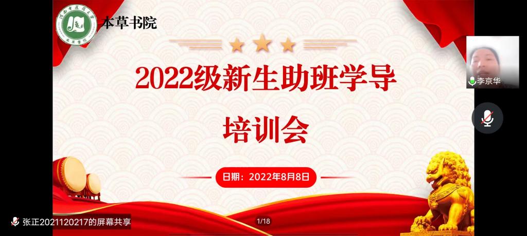 特于2022年8月8日在线上举办2022级新生助班学导培训会。新葡京娱乐城官网