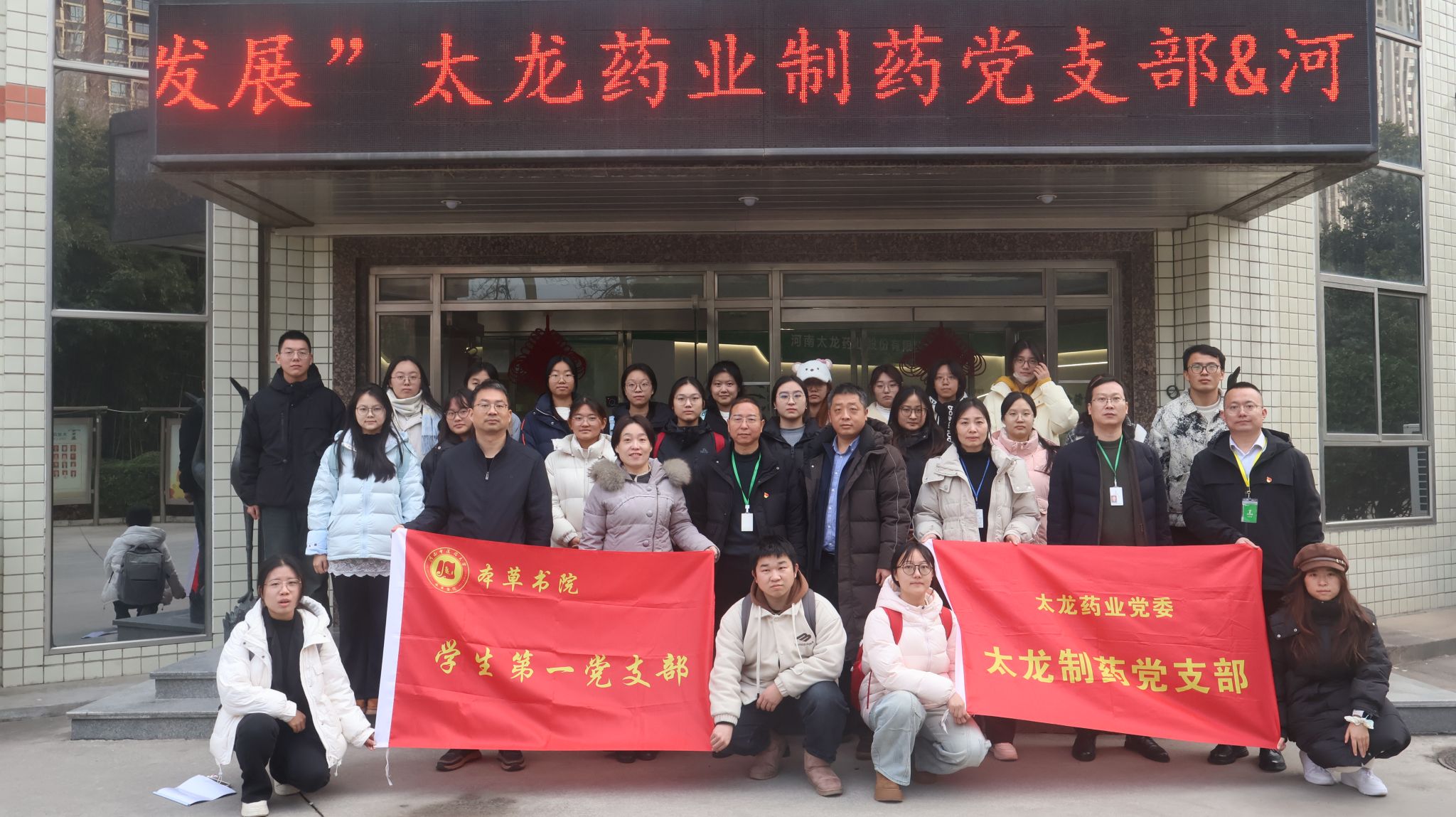 学生第一党支部书记武永勇带领学生第一党支部成员前往河南太龙药业股份有限公司,联合开展“党建引领强信念,院企同心促发展”主题党日活动。河南太龙药业股份有限公司太龙制药党支部书记、事业部副总经理李江华,党支部委员徐晓丽、畅亮等企业代表出席交流活动。