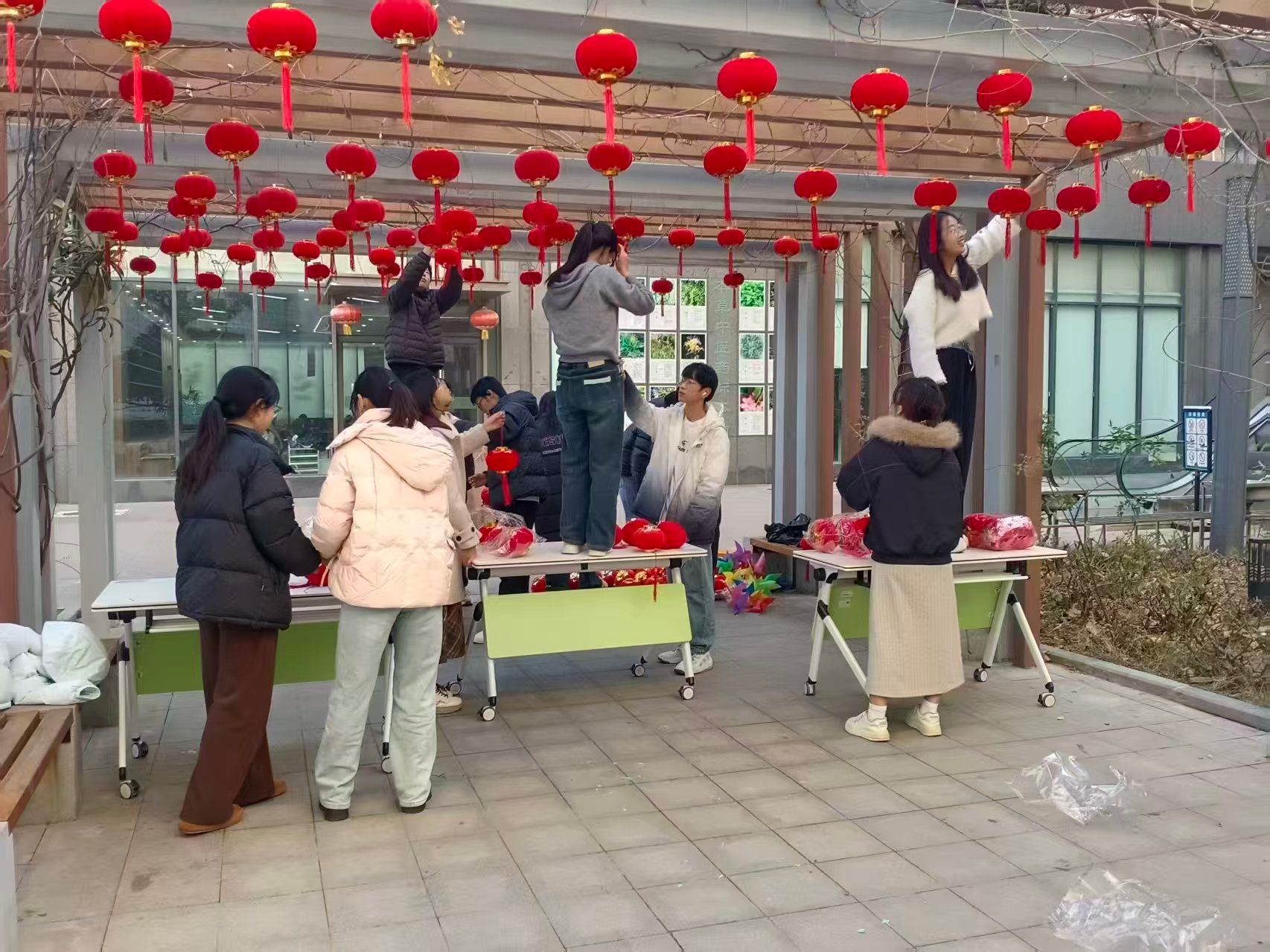 在远志广场连廊开展“喜迎元旦佳节,共挂吉祥灯笼”活动。活动由社区管理委员会组织实施,各部门成员共同参与。