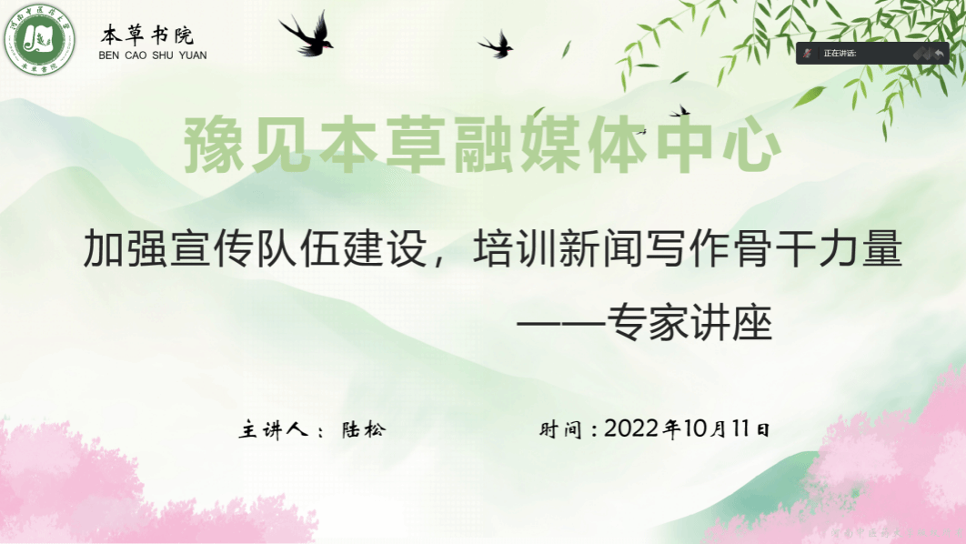 线上开展“四向四做”宣传队伍培养计划之通讯写作专题培训。本次培训特邀河南中医药大学药学院陆松老师主讲,新葡京娱乐城官网