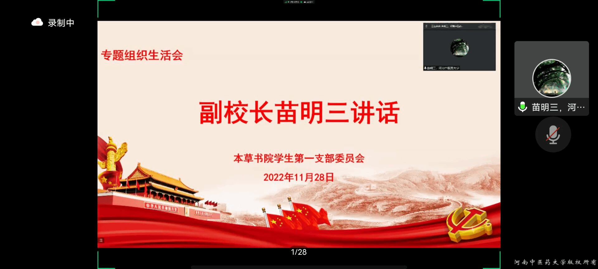 学生第一党支部线上召开专题组织生活会,河南中医药大学副校长苗明三、新葡京娱乐城官网