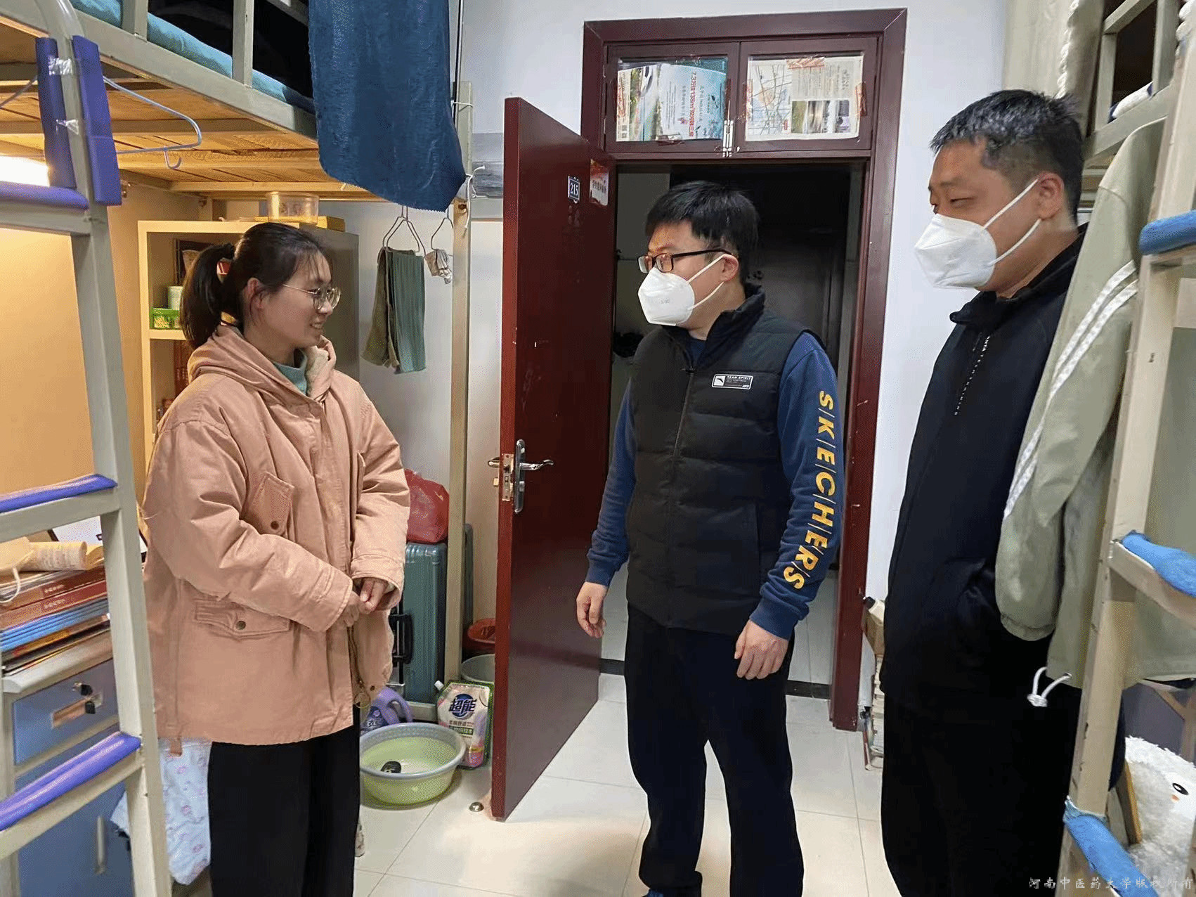 领导和毕业班辅导员老师在满足疫情防控要求的前提下,来到学生宿舍,为正在备战考研和求职面试的毕业班同学送上精心准备的助力包,为同学们加油鼓劲。同时,领导老师也提醒大家要调整心态,合理安排作息,以饱满的状态迎接即将到来的挑战。收到满满祝福的毕业班同学们心潮澎湃、激动不已,纷纷表达了对新葡京娱乐城官网