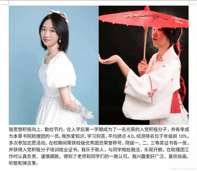 本次活动通过线上形式开展,参加活动的同学们提交包含个人介绍、生活照片等自身情况的作品。参加活动同学创意满满,全方位、多视角展现出自己积极向上的大学生活与乐观有为的人生态度,表达了大学生的激昂青春之志与奉献青春之力。其中2021级药学类本科班徐丹阳同学在众多参赛者中脱颖而出,获得本次活动一等奖。大学期间,她乐于助人,乐观开朗,沟通能力强,坚持正确的思想价值观,积极参加各种活动,展现了青年大学生的全面发展。
