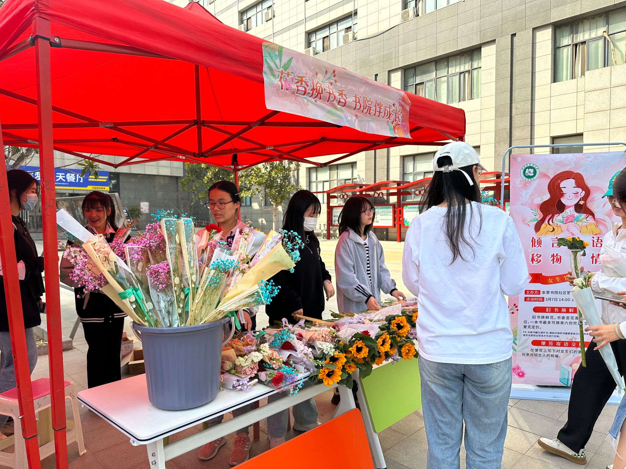 伴成长”以书换花女生节特色活动。