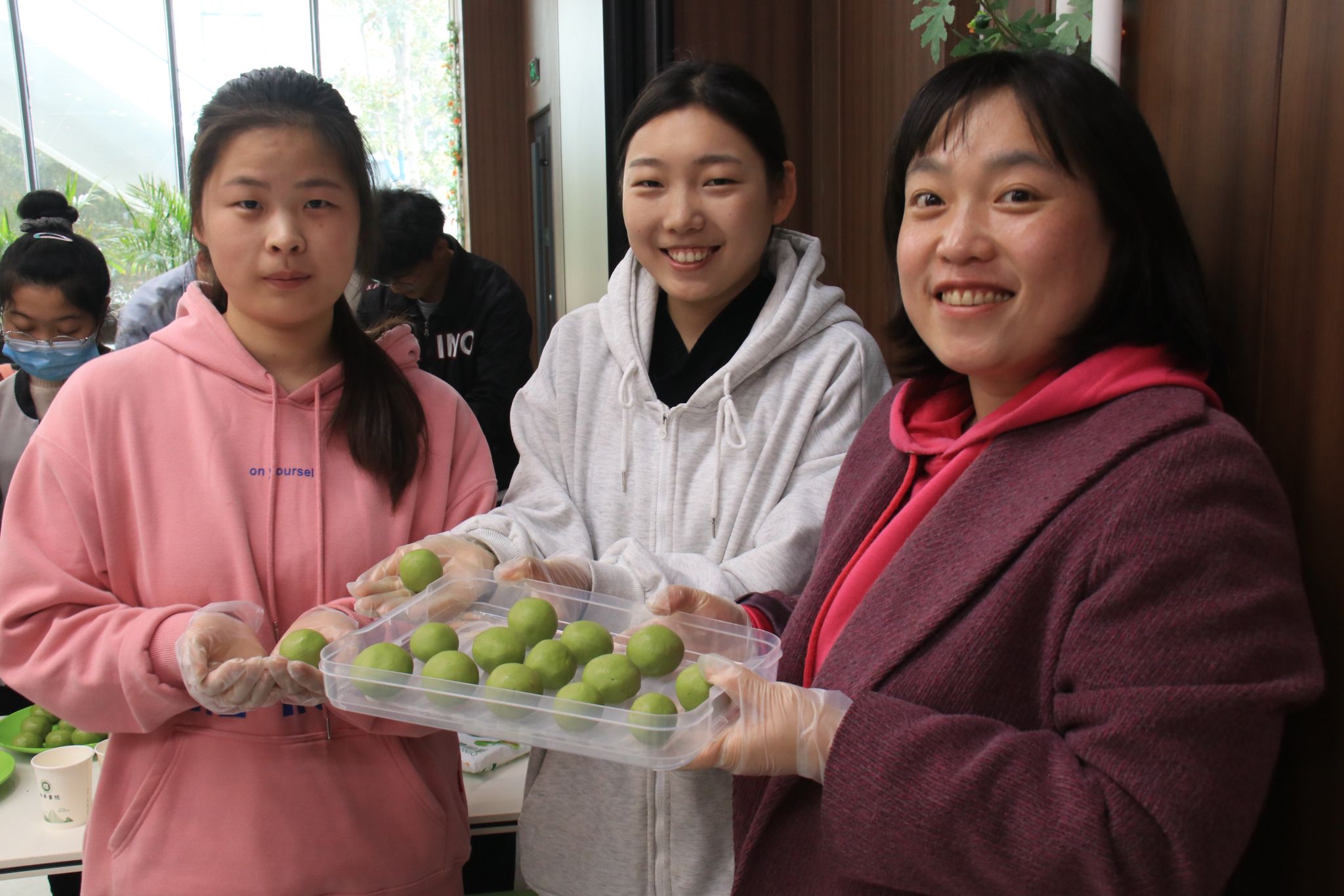 师生共同制作青团