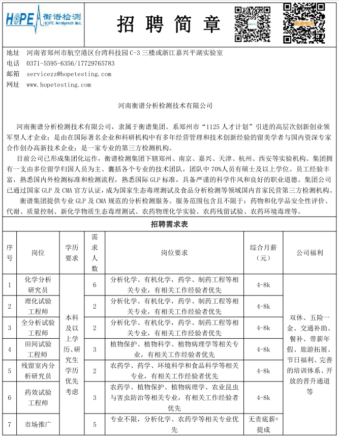 【招聘】衡谱检测招聘简章