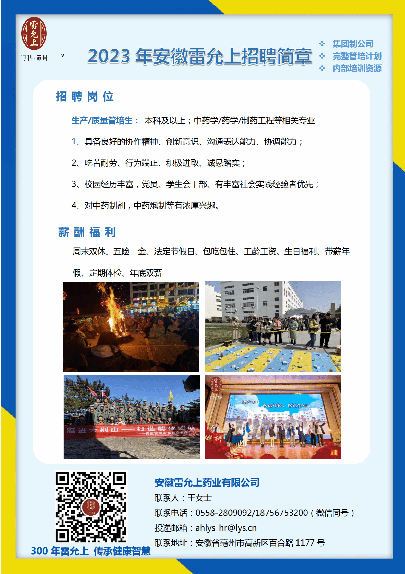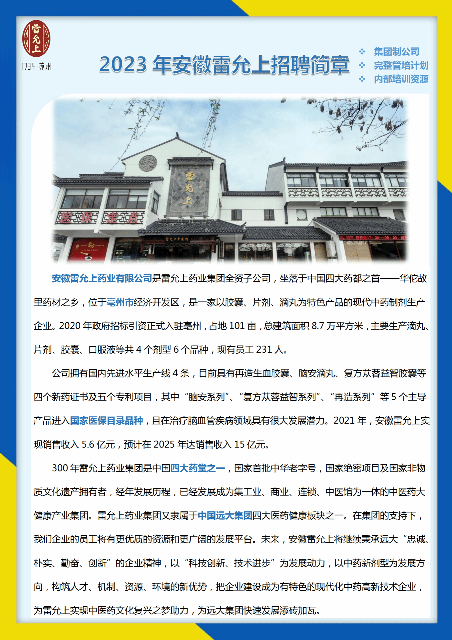 【招聘】2023年安徽雷允上招聘简章